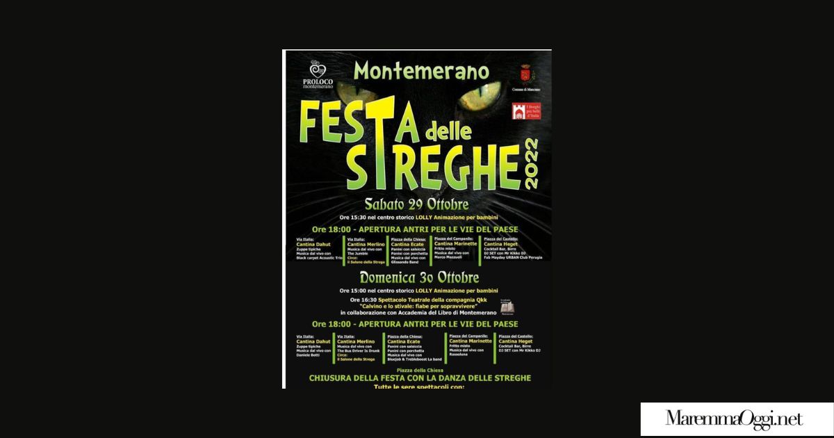 MONTEMERANO. Oggi ha inizio l'undicesima edizione della festa delle Streghe, che si svolgerà sabato 29 e domenica 30 Ottobre nel comune di Manciano. Un grande evento che attira da anni molti visitatori per scoprire gli angoli nascosti del borgo, completamente allestito e addobbato in modo tematico. All'interno del centro storico alle ore 18 apriranno gli antri […]