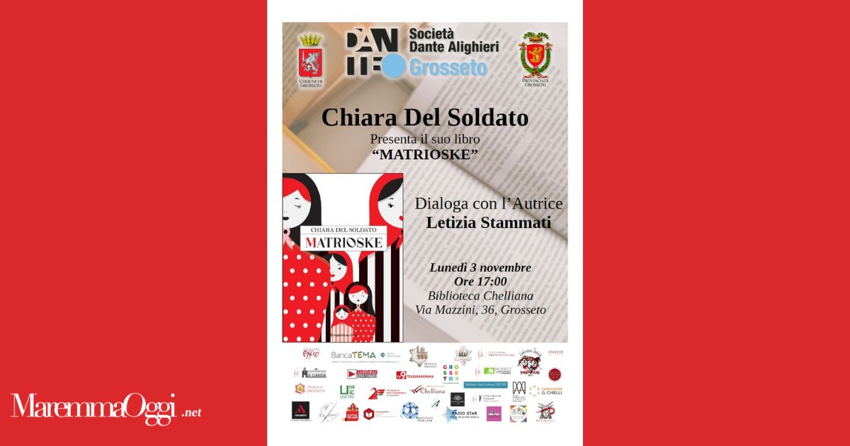 GROSSETO. Lunedì 3 novembre alle 17 avrà luogo presso la Biblioteca Chelliana la presentazione del libro "Matrioske", di Chiara Del Soldato, organizzata dalla Società Dante Alighieri. Chiara Del Soldato è un'insegnante di Italiano e Latino competente e vivace. Lettrice appassionata, sollecitando durante gli anni di docenza i propri studenti alla composizione di testi originali, entra lei stessa […]