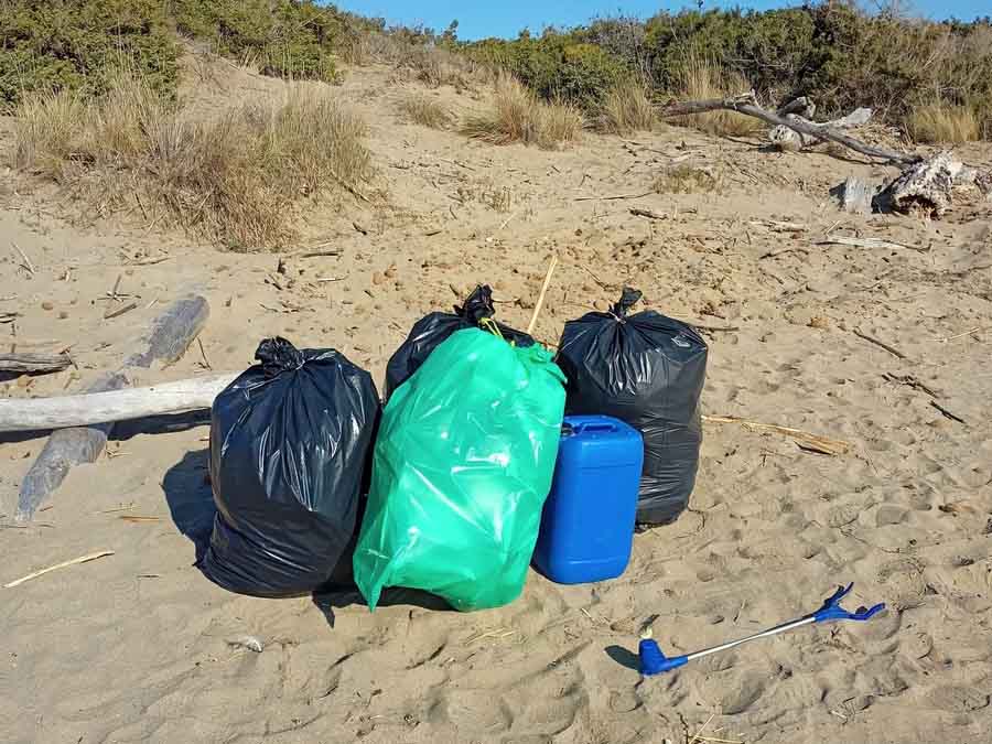 Alla fine sono stati una trentina i sacchi di polistirolo, bottiglie di plastica e materiali vari, recuperati dalle dune e dal retro duna.