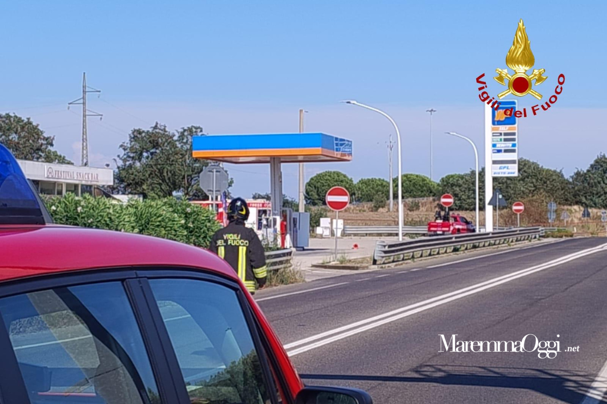 Due squadre del comando dei vigili del fuoco hanno lavorato dal primo pomeriggio nella stazione di servizio Ip di Capalbio, lungo l’Aurelia.