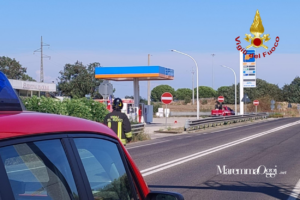 Nel distributore, intorno alle 15.30, si è verificata una fuoriuscita di gas di petrolio liquefatto (gpl) per autotrazione. Fuoriuscita che ha causato un principio di incendio in prossimità dei contatori elettrici a servizio dell’impianto di distribuzione.