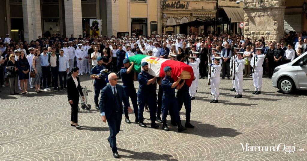 GROSSETO. L’ottone della tromba scintilla alla luce, il picchetto armato della Marina militare è vestito di bianco, i reparti subacquei in blu. Il sagrato del duomo è invaso dal sole, la gente trova riparo all’ombra dei portici.