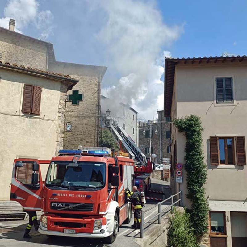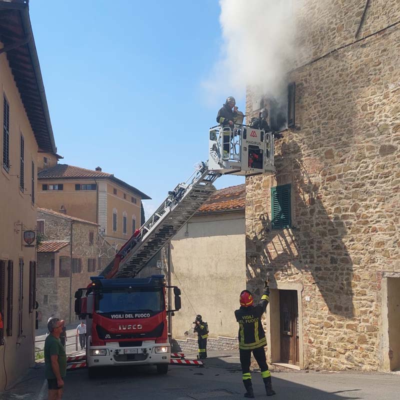 CAMPAGNATICO. Fuoco in un appartamento nel centro di Campagnatico, proprio sopra alla farmacia del paese.
