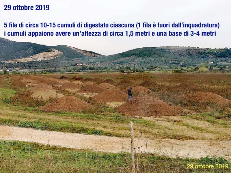 «Il Forum Ambientalista e il Comitato Grosseto Aria Pulita avevano segnalato fin da novembre 2019 un deposito esagerato di digestato solido in località lago Bernardo, che non poteva rispettare né le condizioni colturali previste dalle norme e finalizzate al miglioramento della fertilità dei terreni, né i limiti previsti dalle leggi per il deposito massimo di azoto, ipotizzando che tali terreni fossero stati di fatto utilizzati come discarica per lo smaltimento dei materiali solidi e liquidi in uscita dagli impianti a biomasse».