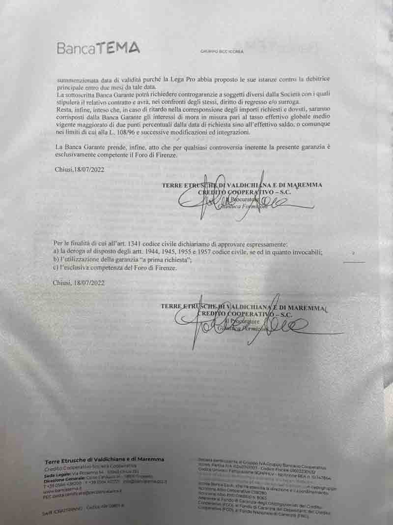 GROSSETO. Oggi sono state depositate le fidejussioni e gli assegni, necessari per l’iscrizione al campionato di serie D.