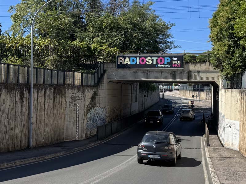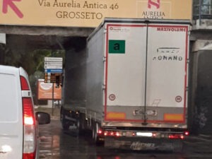 Alto 3,90 metri, è in corrispondenza dell’unico semaforo rimasto sul territorio di Grosseto, pur consentendo la svolta libera a sinistra. Anche questo, nel tempo, ha visto qualche mezzo pesante incastrato. E non è mancato chi ci è rimasto bloccato con l’auto per la pioggia.