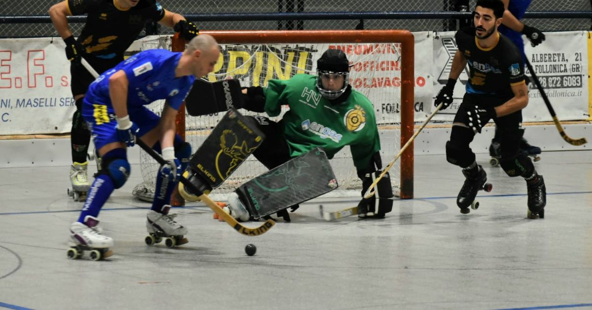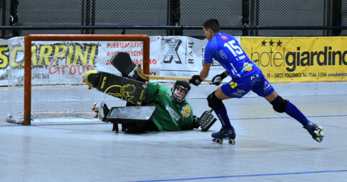 La sfida ha visto subito il Follonica partire sparato, ma al gol di Davide Banini ha risposto Mattugini abile e svelto a rubare pallina a centro pista e sparare dal limite un bolide che ha fatto secco Barozzi. Il lancio di Montigel ha trovato Bonarelli in area, con il giovane bomber che si è girato in un fazzoletto e messo alle spalle di Verona. Nel finale di tempo blu a Verona che aggancia Francesco Banini e sulla punizione il neo entrato Pettenuzzo stoppa Dadda Banini. Ad inizio ripresa il 3-1 maremmano, dopo un sandwich su Mattugini che ha fatto arrabbiare Crudeli: dall’altra parte Davide Banini mette nel sacco. Tre minuti dopo gol anche di Francesco Banini e gara che di fatto prende la via della Maremma. A seguire ancora un gol di Davide Banini, poi al volo accorcia Neves (dato in procinto di passare al Trissino, mentre Tataranni e Verona potrebbero accasarsi a Breganze), e ancora il 6-2 firmato da Davide Banini (20 centro stagionale). Neves si vede parare un rigore da Barozzi con Marco Pagnini che infila l’angolino per il definitivo 7-2.
