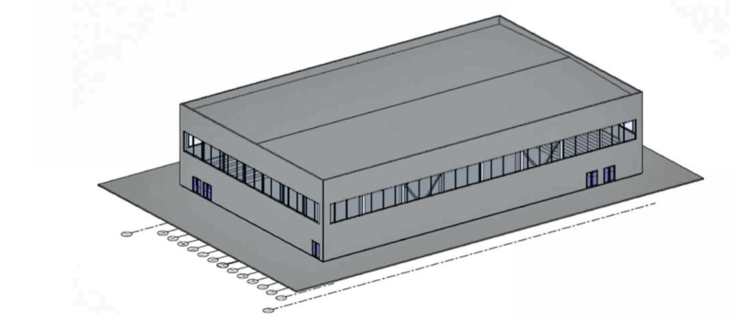 realizzazione di un edificio a forma rettangolare con lati 48,40 metri per 31, con un’altezza di 9,50 metri.