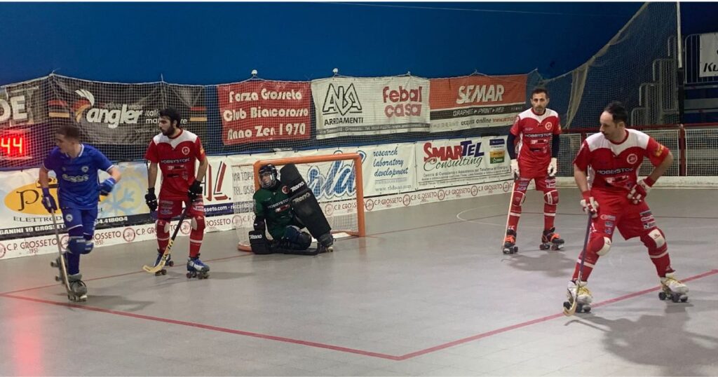 GROSSETO. Il Circolo Pattinatori Hobbystore Grosseto archivia la prima parte della stagione con una sconfitta nel derby contro l’Acea Follonica (4-12). La formazione biancorossa guidata da Carlo Gucci ha sofferto la velocità dei giovani azzurri e il talento di Cabiddu e Bonarelli (7 reti in due), prestati alla squadra di A2 dal tecnico del Galileo di A1 Sergio Silva. I grossetani hanno iniziato bene, ma si sono spenti dopo aver subito tre reti nel giro di sei minuti.