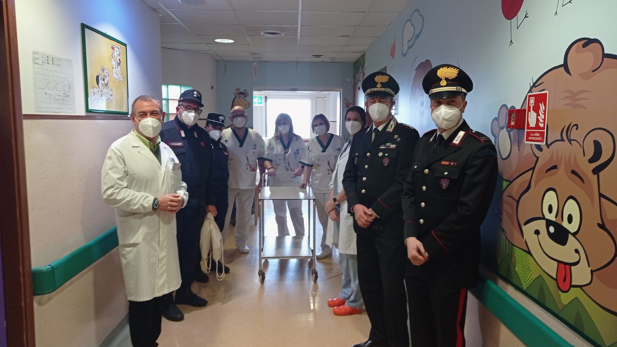 Alla consegna delle confezioni era presente il direttore del presidio ospedaliero Michele Dentamaro insieme al personale medico e infermieristico del reparto di Pediatria, il colonnello Giovanni Quilghini. comandante del reparto carabinieri Biodiversità di Follonica accompagnato dal maresciallo Bruno Forieri, dal vice brigadiere Simona Palmieri e dall’appuntato Giorgio Mercante.