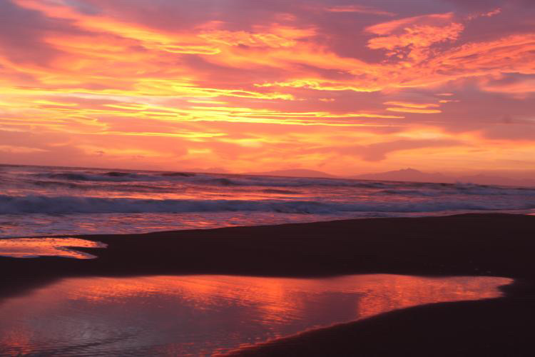 Il tramonto riflesso sulla battigia è stato scattato con questi dati tecnici: tempo 0″4 F9 iso 100, senza cavalletto.