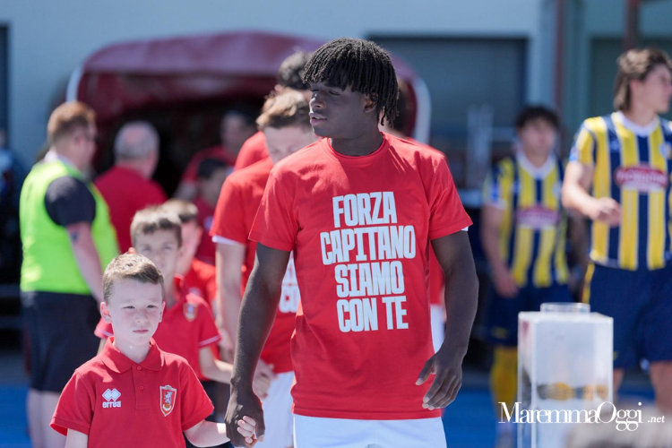 Prima dell’inizio ci sono stati momenti emozionanti. La formazione del Grifo entra in campo sfoggiando il numero 4 sulla schiena per salutare Riccardo Cretella presente in tribuna. Durante il lungo applauso l’ex capitano si è alzato a salutare l’affetto della gente. La curva ha poi scandito il suo nome e Cretella ha risposto alle bandiere.