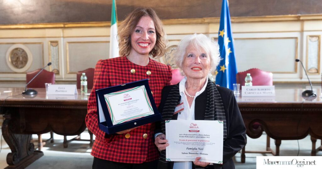 FOLLONICA. Il 30 gennaio a Palazzo Montecitorio, sede della Camera dei deputati, durante la cerimonia “Arti e professioni dell’eccellenza italiana – Premio Wella ai migliori saloni italiani” la famiglia Neri del salone Donatella e Romano ha ricevuto il Premio di generazione in generazione,