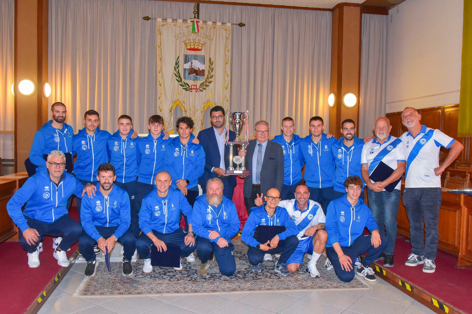 Il sindaco Matteo Buoncristiani ha voluto così festeggiare i campioni consegnando loro «un riconoscimento per il successo raggiunto, che ricordi a tutti voi l’affetto e l’orgoglio dell’intera città nei vostri confronti, dello staff e della società».