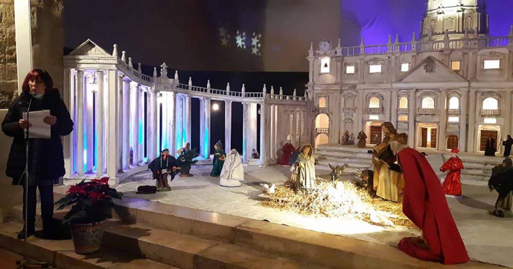 «Quella solitudine in piazza rappresentava tutta l’umanità qui riproposta nel presepe”. Infine il tema dell’accoglienza: “La piazza rappresenta il mondo, in cui tante volte ci sono persone che trovano solitudine mentre desiderano amicizia, famiglia, una mano tesa, una terra. Pensando al natale non dimentichiamo che Gesù, Maria e Giuseppe hanno fatto esperienza di non trovare casa… e pensiamo che Dio è dentro queste realtà di sofferenza perché noi impariamo a farcene carico, nelle piccole o grandi scelte che ci mettono sempre di fronte all’altro come al volto di Cristo».