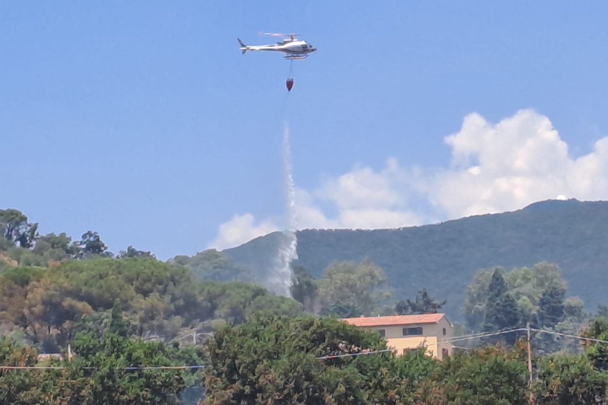 La preoccupazione è per alcune abitazioni vicine, con il vento che potrebbe spingere il fuoco in quella direzione.