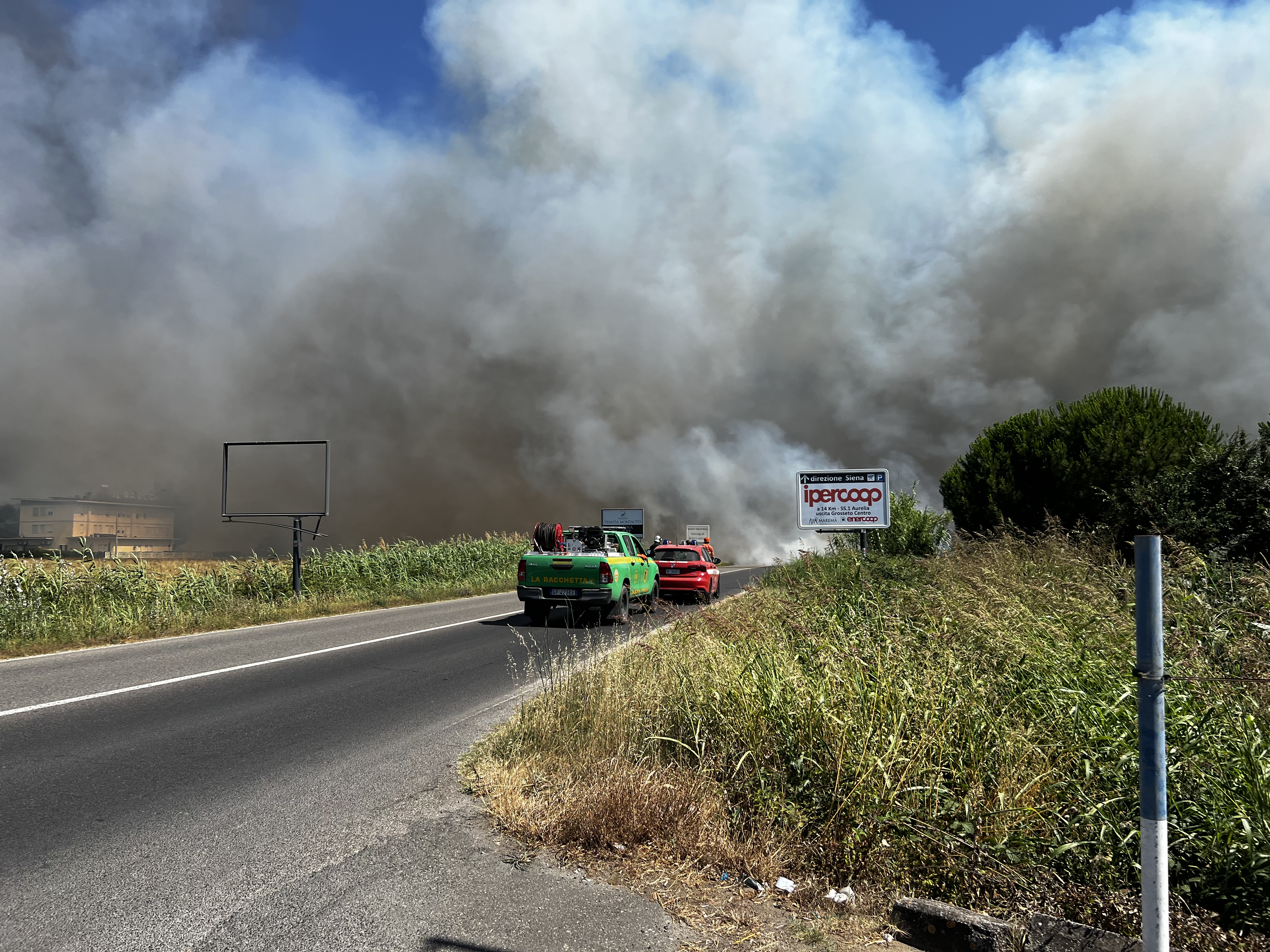 È stato un primo pomeriggio di passione per gli agenti della polizia municipale, che erano già intervenuti nella zona a causa di un incidente tra due auto che per fortuna non ha avuto gravi conseguenze. Poco dopo il loro intervento per i rilievi, si è alzata la colonna di fumo nero, dai campi vicini alla ferrovia.