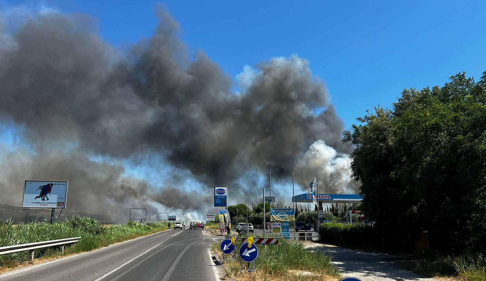 GROSSETO. Un’intensa nuvola di fumo nero si è alzata a causa di un incendio scoppiato tra l’Hotel Il Parco e le stazioni di servizio che si trovano in via Aurelia sud.