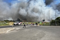 Il rogo sarebbe partito da uno dei terreni che costeggiano la ferrovia e il vento sta spingendo le fiamme verso le due stazioni di servizio che si trovano in via Aurelia sud.