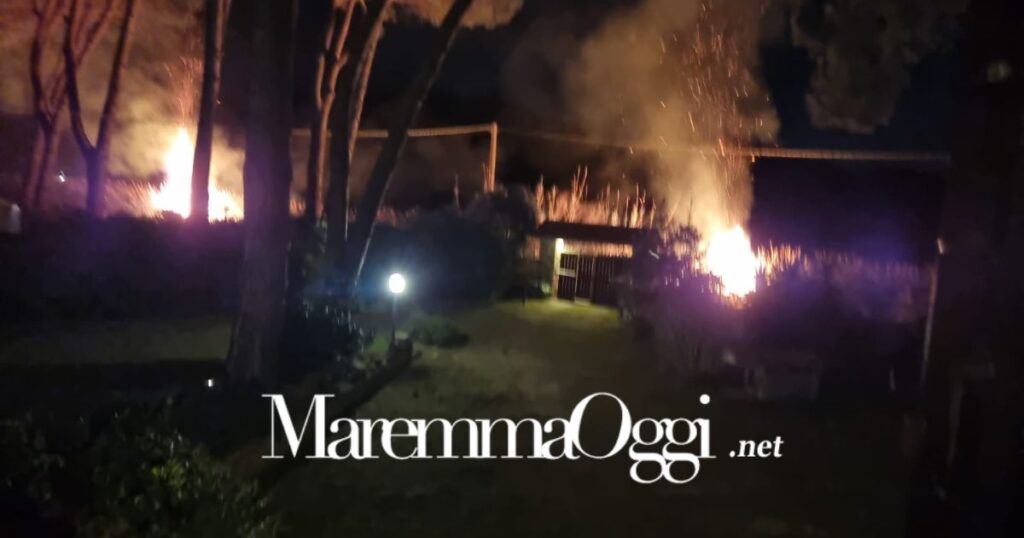 CASTIGLIONE DELLA PESCAIA. Paura la scorsa notte di venerdì, verso le 23 a Castiglione della Pescaia: un incendio a canneto lungo strada alla Baldana, stava per aggredire i pini e le abitazioni.