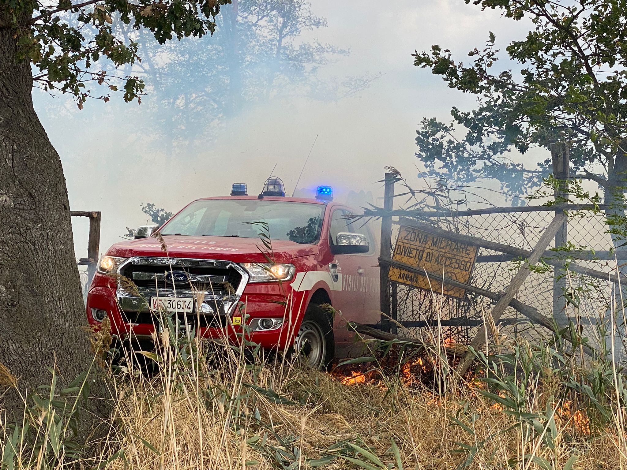 GROSSETO. Il fronte del fuoco è largo diverse centinaia di metri e i vigili del fuoco sono al lavoro per domare le fiamme dell’incendio scoppiato sulla Catiglionese, dietro al Cemivet, il Centro militare veterinario, dove stanno bruciando ettari di sterpaglie.