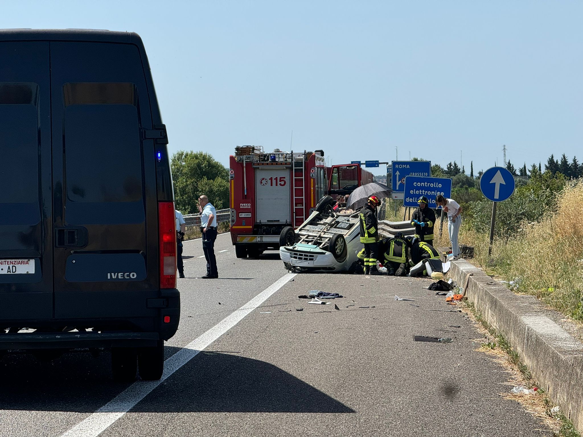 Un camion di Bartolini ha tamponato un’auto, che si è ribaltata su se stessa a causa della botta. L’uomo alla guida della vettura tamponata è rimasto incastrato all’interno dell’automobile e le sue condizioni sono gravi.