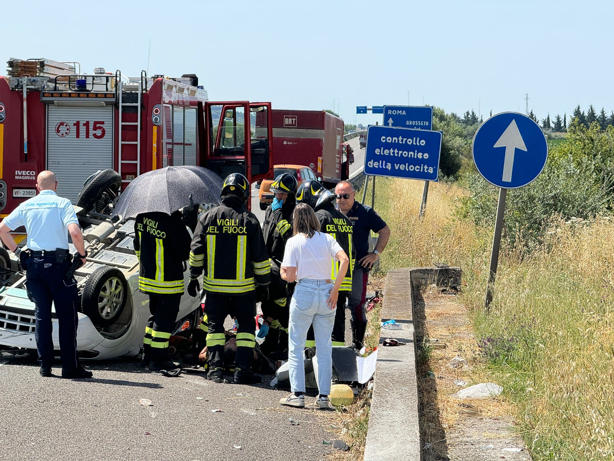 L’auto tamponata viaggiava sull’Aurelia, strada statale 1, in direzione Roma.