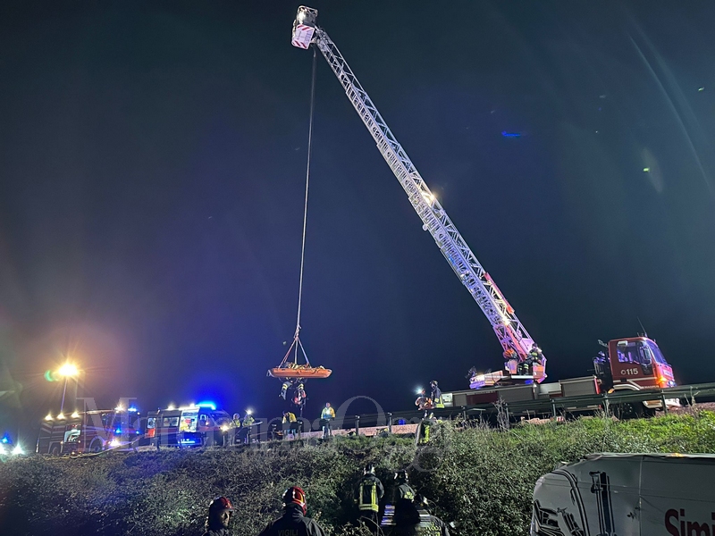 Grazie all’intervento coordinato delle squadre, è stato possibile raggiungere la persona all’interno del veicolo e trasportarla su barella toboga fino all’ambulanza per l’affidamento ai sanitari.