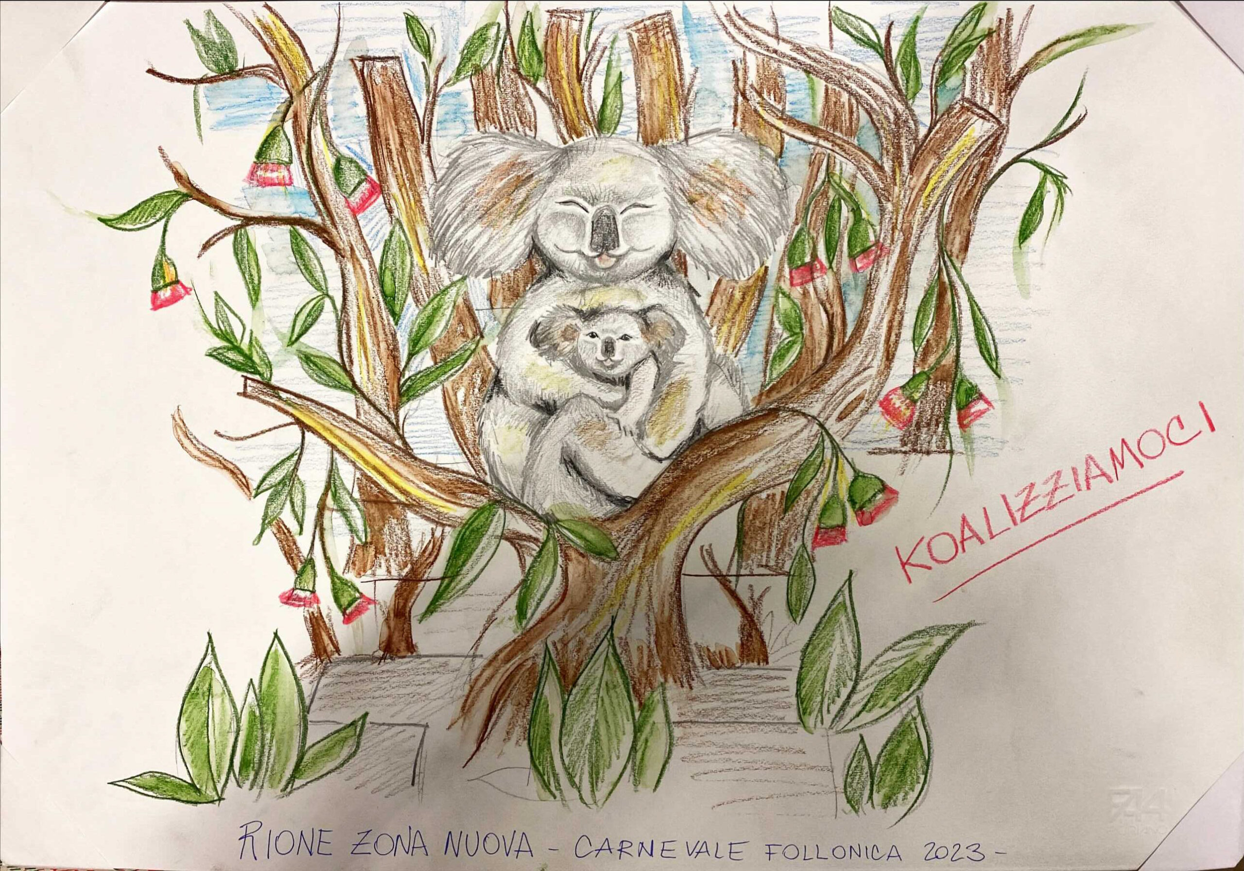 Il tema del intende sensibilizzare sulla difesa della vita. Il rione ha pensato di scegliere come mascherone principale il Koala, una specie a rischio estinzione a causa dei cambiamenti climatici e della mano dell’uomo. Il carro è una riproduzione di una foresta tipica dell‘Australia con alberi, foglie e fiori di eucalipto, il cibo preferito di questi teneri koala. Nella foresta vivono indigeni e una bella varietà di flora e fauna. “Koalizziamoci” è un gioco di parole che esorta l’uomo a unirsi per ritrovare il legame perduto con la natura.