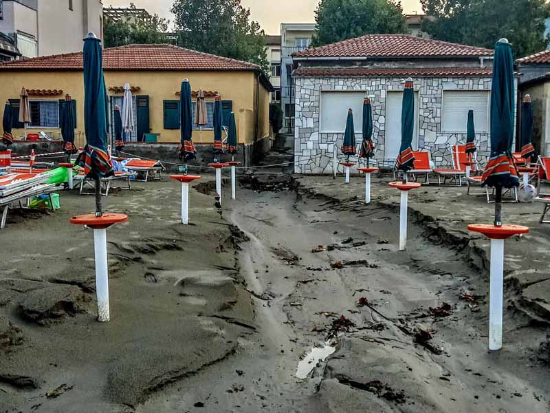 A Follonica qualche locale allagato sul lungomare e danni agli stabilimenti Ausonia e Orchidea.