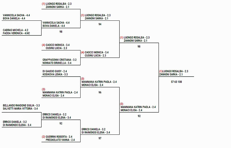 Nell’over 40 si fermano ai quarti la stessa Monaci (con Cristina Cipriani) e Alessandra Moroni con Lucia Curielli. Titolo a Grasso-Cirillo.