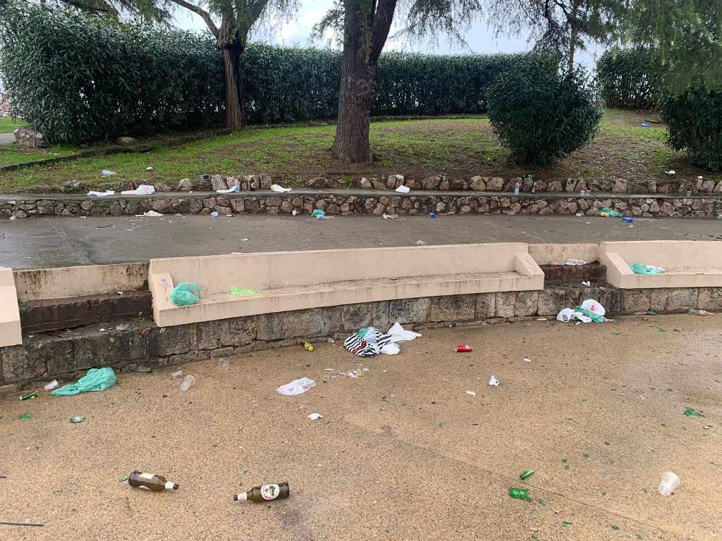 GROSSETO. Uno spettacolo indecoroso, quello che si è presentato domenica 26 dicembre agli occhi dei grossetani, pochi per la verità, che nonostante la pioggia sono saliti sulle Mura, chi per fare due passi con l’ombrello aperto, chi invece per portare fuori il cane. Alla Cavallerizza c’era una distesa di sporcizia, bottiglie di superalcolici, bicchieri, sacchetti, lasciati per terra dai tanti giovani che nella notte tra Natale e Santo Stefano hanno utilizzato quello spazio per organizzare una specie di festa.