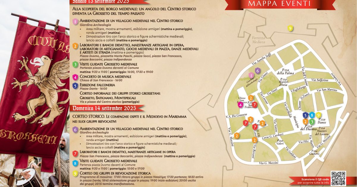Un programma ci sono anche il concerto di musica medioevale nella chiesa di San Francesco e il corteo informale dei gruppi storici grossetani nelle vie e piazze del centro storico