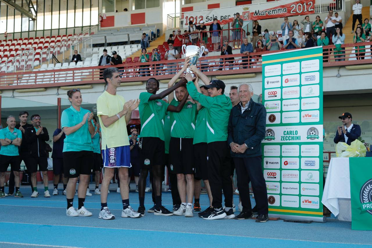 Una finalissima degna del nome della manifestazione. Occorrono i calci di rigore per risolvere il braccio di ferro iniziato subito dopo il via. Il Bologna è coordinato, arcigno, e attacca. La Lazio è sornione, un elastico preciso costretto a difendersi ma altrettanto pericoloso nel capovolgere il fronte come al 14′ quando colpisce la traversa. La ripresa continua a distribuire emozioni, geometrie valide accendendo il consenso del pubblico. Nessuno si risparmia sul terreno, l’altalena non concede respiro. Al termine il risultato è inchiodato sullo 0-0. Appaiono i rigori. La Lazio è un cecchino, 4 reti su 4 tiri, il Bologna inciampa nei primi due con il portiere Genetiempo felino nelle respinte. I ragazzi di mister Gualdaroni, con merito, salgono sul podio più alto del 1° memorial Carlo Zecchini.