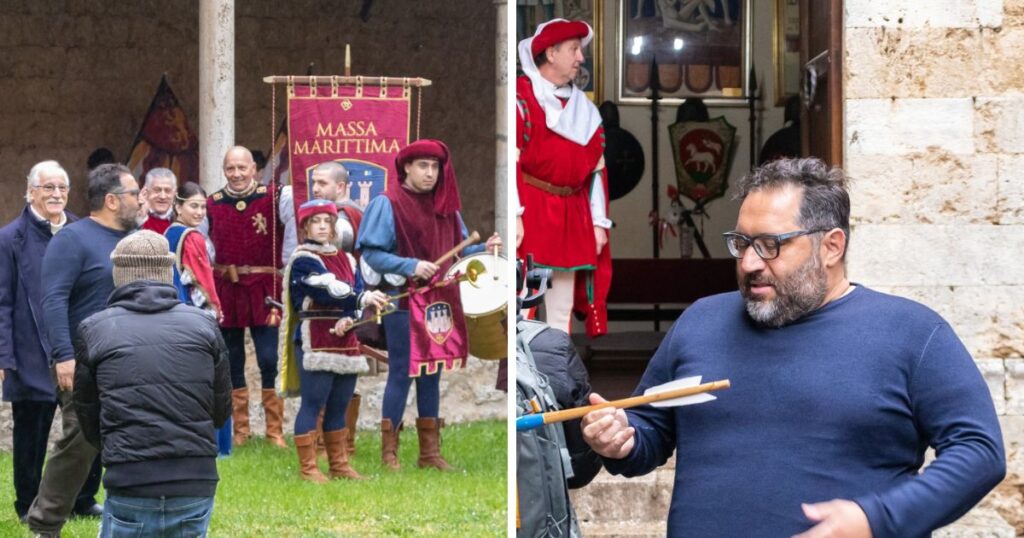 Mentre mercoledì 22 Giuseppe Calabrese ha assistito allo spettacolo degli sbandieratori di Massa Marittima, giovedì Giuseppe Convertini ha visitato l’area archeologica sul golfo di Baratti, guidato da Marta Coccoluto la responsabile del parco.