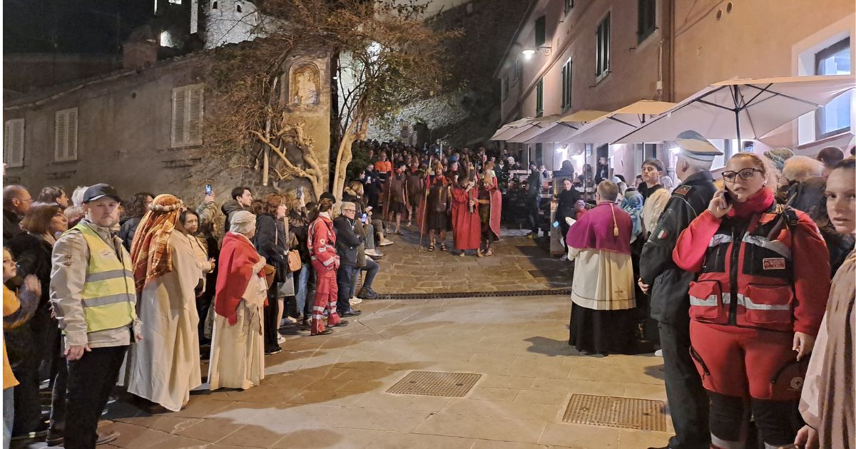 Un evento ormai che sta diventando una vera tradizione, e che in una serata primaverile ha portato nel borgo medioevale, una location naturale, non solo tanti residenti ma molti turisti, anche stranieri, che anche loro hanno apprezzato molto la “recita”.
