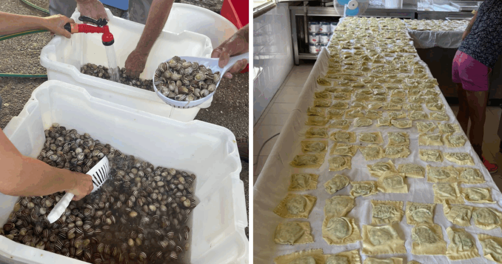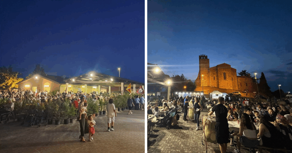 Uno degli esempi più evidenti dello spirito collettivo che unisce gli abitanti di Campagnatico è proprio la sagra, che ogni estate coinvolge un numero incredibile di volontari – circa 100 persone su 500 abitanti. C’è chi cucina, chi serve ai tavoli, chi organizza, chi coordina… tutti pieni di passione e amore per il proprio paese.