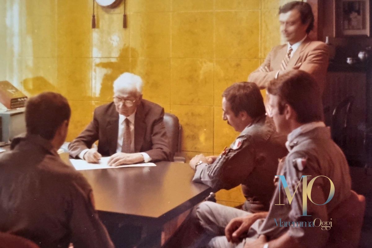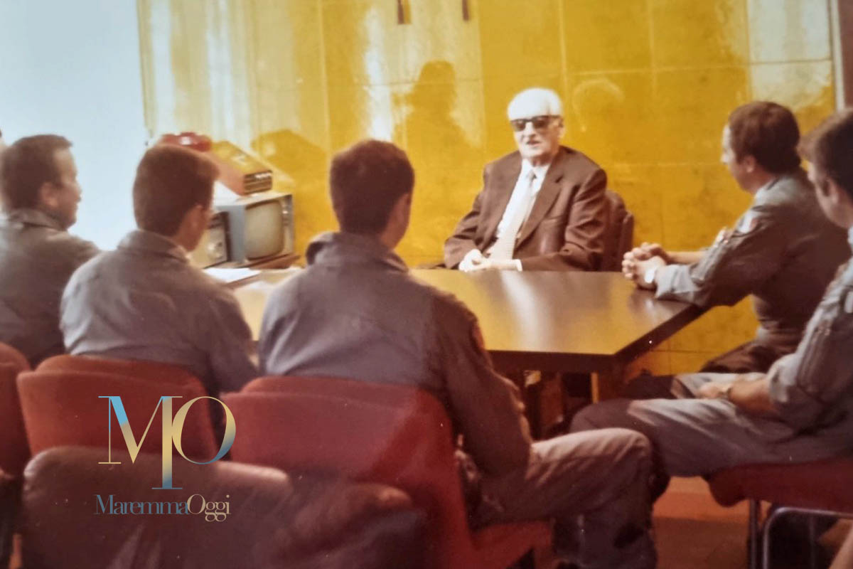 Ma il grande protagonista sulla pista di Maranello fu Gilles Vileneuve. «Lui stava provando un’auto e noi, in formazione, facemmo 4 o 5 passaggi – ricorda – quando a un certo punto finì fuori pista perché si era distratto». Fu in quell’occasione che i piloti che erano in servizio a Grosseto si trovarono faccia a faccia con Enzo Ferrari.