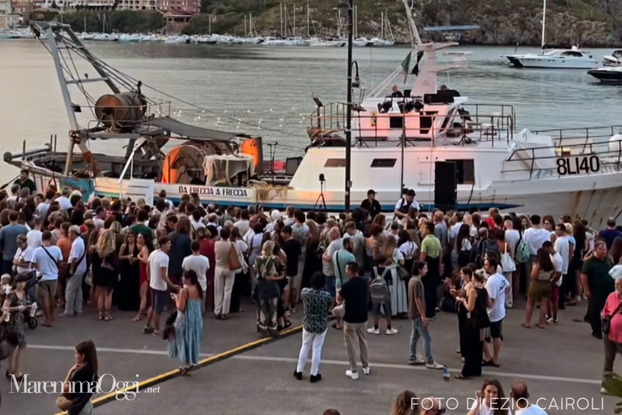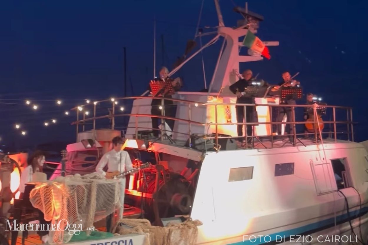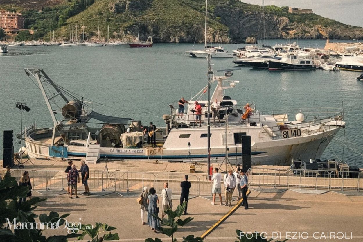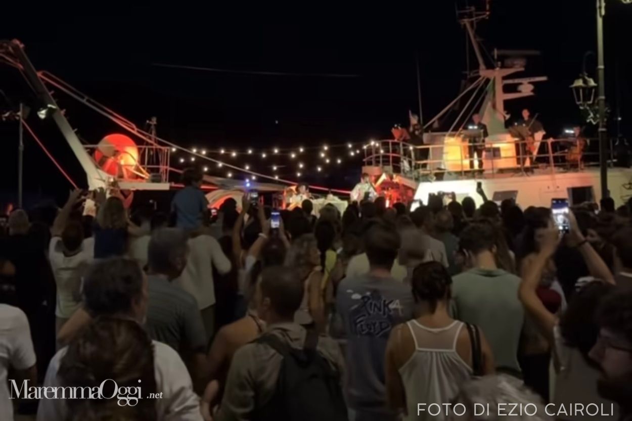 PORTO ERCOLE. L’evento dell’estate, che ha suggellato sempre di più il rapporto viscerale tra Lucio Corsi e Tommaso Ottomano con la Maremma, con Porto Ercole, con l’Argentario. Davanti ad una cornice unica, mercoledì 27 agosto, Porto Ercole ha vissuto una serata speciale, unica, con il concerto gratuito di Lucio Corsi, che si è esibito a bordo del motopeschereccio Freccia di Carlo Mazzella, ormeggiato davanti alla Banchina Marinai d’Italia.