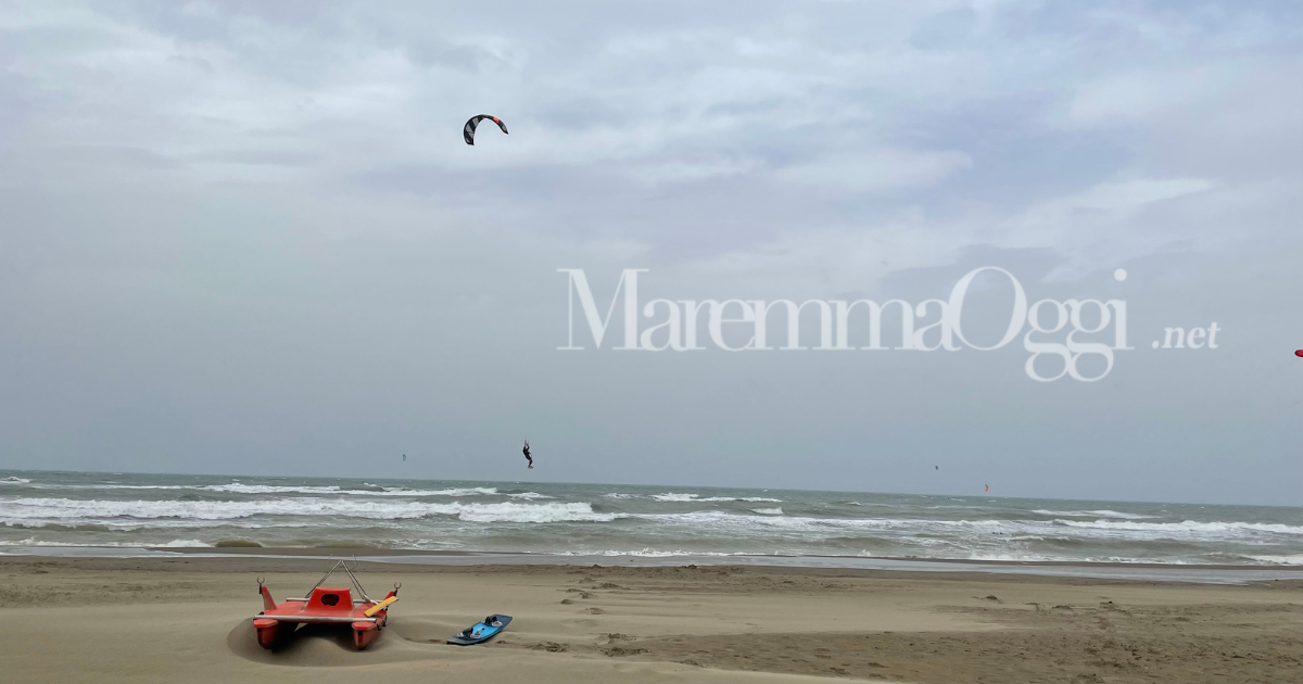 Le forti folate di vento, che sferzano sulla Maremma già dal primo mattino, stanno imperversando anche sulla costa. I più temerari e appassionati di kitesurf ne hanno approfittato per uscire in mare davanti al bagnetto Moreno di marina di Grosseto.
