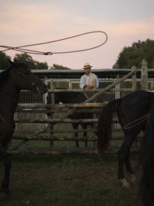 Alla Tenuta Le Piane, Sardi vive a stretto contatto con i butteri, seguendoli durante le giornate di lavoro: dalla gestione del bestiame alle vaccinazioni, fino al controllo delle gravidanze. Un’esperienza che le permette di cogliere il lato meno visibile di questa figura: sacrificio, dedizione e soprattutto il rapporto unico tra cavaliere e cavallo, basato su fiducia reciproca.