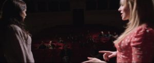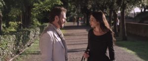 Fotogramma da “Il velo di Maya”, i personaggi sono davanti al Tribunale di Grosseto