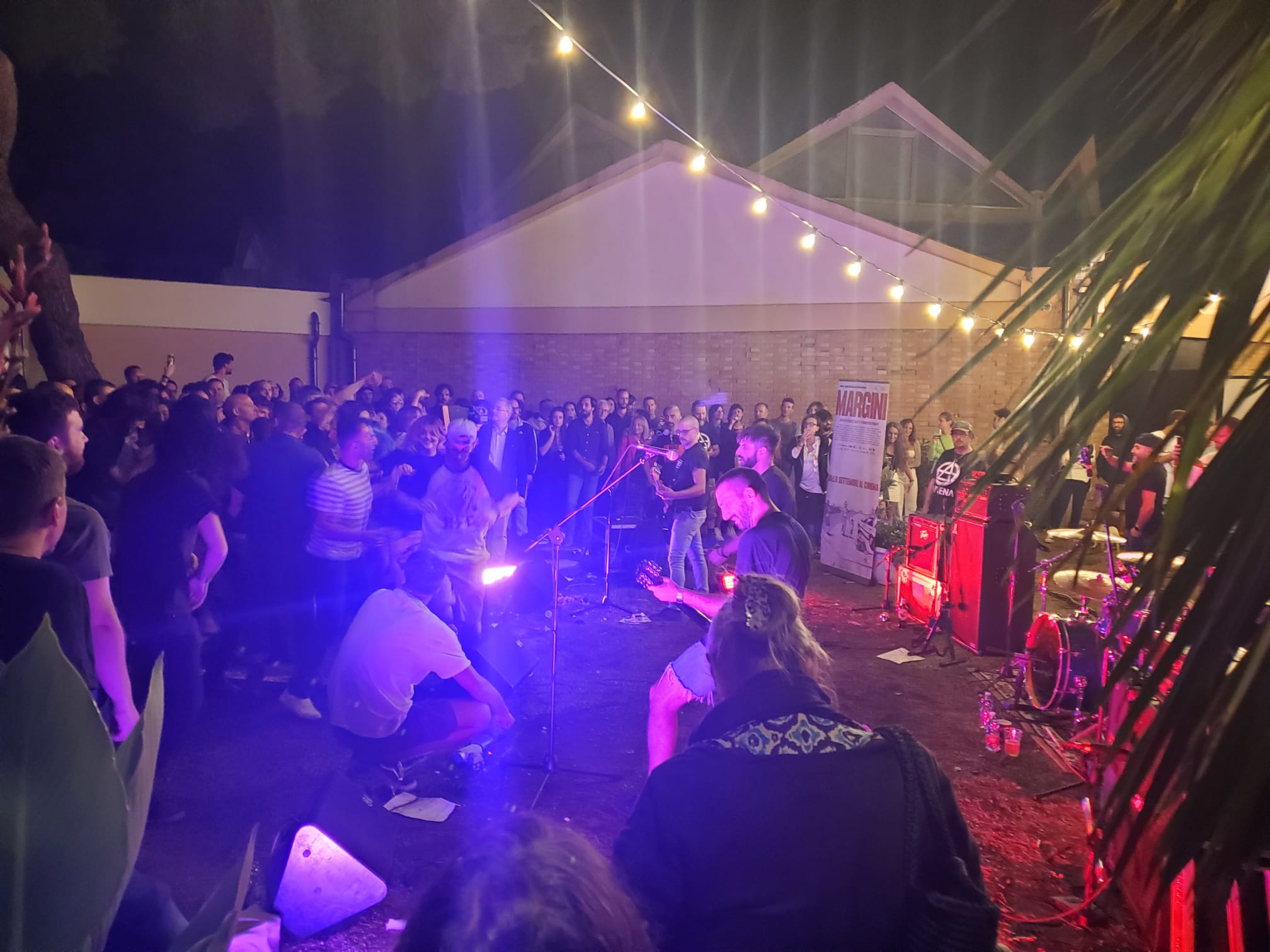 Il primo giorno di proiezioni è terminato con un concerto di band tra cui i “Pegs” (la band con Falsetti e Turbanti) appena fuori dall’Eden, tra fan scatenati e un pubblico di giovani e meno giovani incuriositi.
