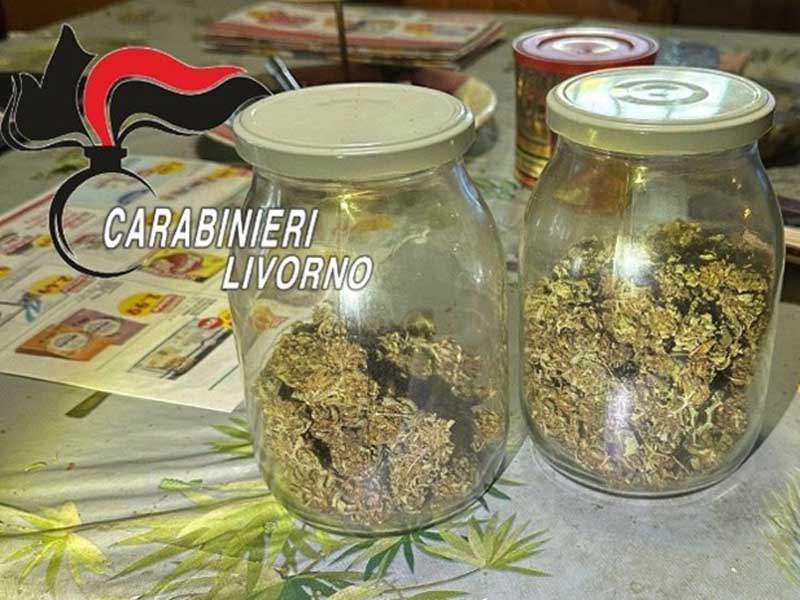 I carabinieri hanno così trovato quasi 2 chilogrammi di marijuana essiccate, stivate in decine di barattoli di vetro e conservate nelle diverse stanze della casa.