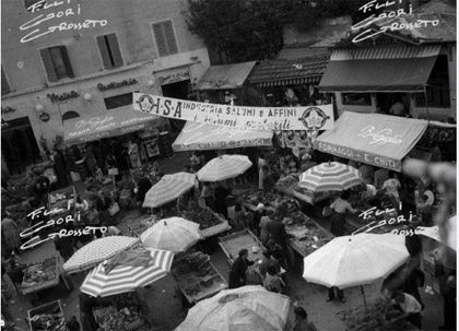 Il mercato in origine si trovava in piazza del Sale, con l’Ente comunale di consumo e altre attività, per lo più alimentari. C’erano i baracchini nella piazza.