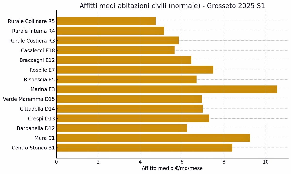 Anche gli affitti seguono la stessa tendenza: canoni più alti vicino al centro e nelle aree costiere, più contenuti nelle zone suburbane e rurali.