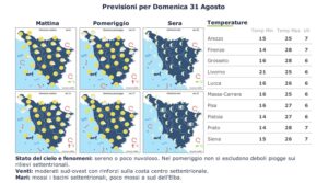 In netto miglioramento domenica 31 agosto. Cielo sereno o poco nuvoloso, venti da sud-ovest e mari mossi. Temperature stazionarie.