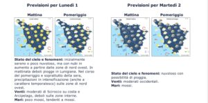 Cielo sereno o poco nuvoloso lunedì 1° settembre. Poi l’arrivo delle nubi a partire da nord-ovest. Venti di scirocco moderati- Mari mossi. Per martedì 2 settembre torna la pioggia su tutta la costa e nelle zone interne. Venti dai quadranti occidentali, mari mossi.