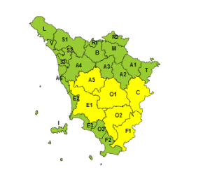 Nel grossetano, il codice giallo riguarda l’alto e medio corso dell’Ombrone e le zone interne del Fiora e dell’Albegna.