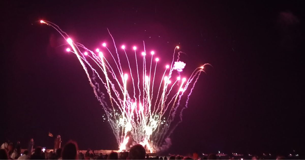 Come sempre tutti con il naso allinsù, con la spiaggia di ponente affollatissima così come il lungo mare di via Roma, soprattutto con i bambini estasiati dai fuochi d’artificio.
